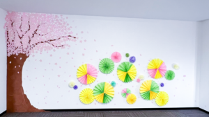新しく仲間に加わった職員も一緒に、どの様にすれば来ていただいた皆さんに喜んでいただけるかを考えながら飾り付けを行いました!